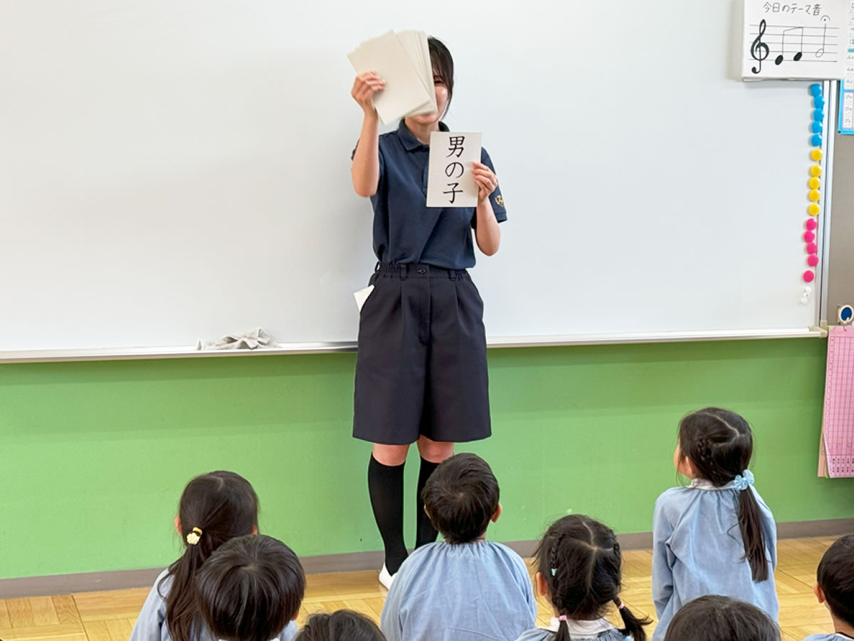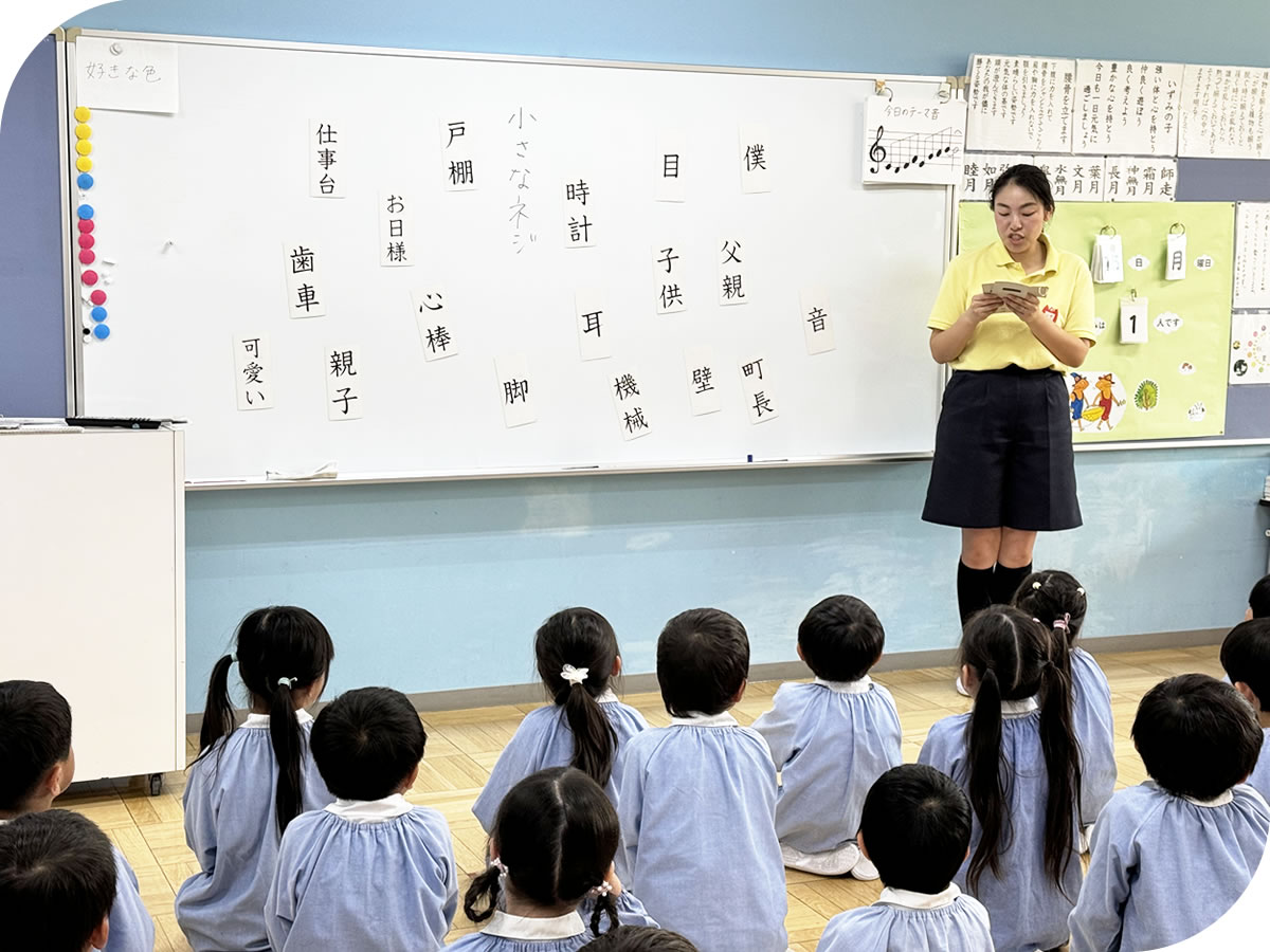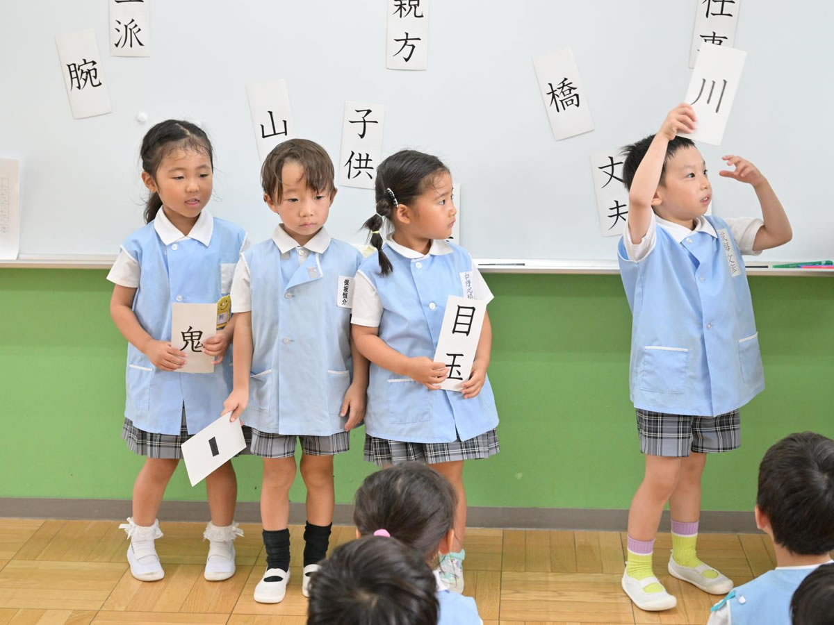 幼児にとって「漢字はかなよりやさしい」ことを発見された石井勲博士の考えに基づき、漢字かな交じり文を用いた言葉教育を実践しています。