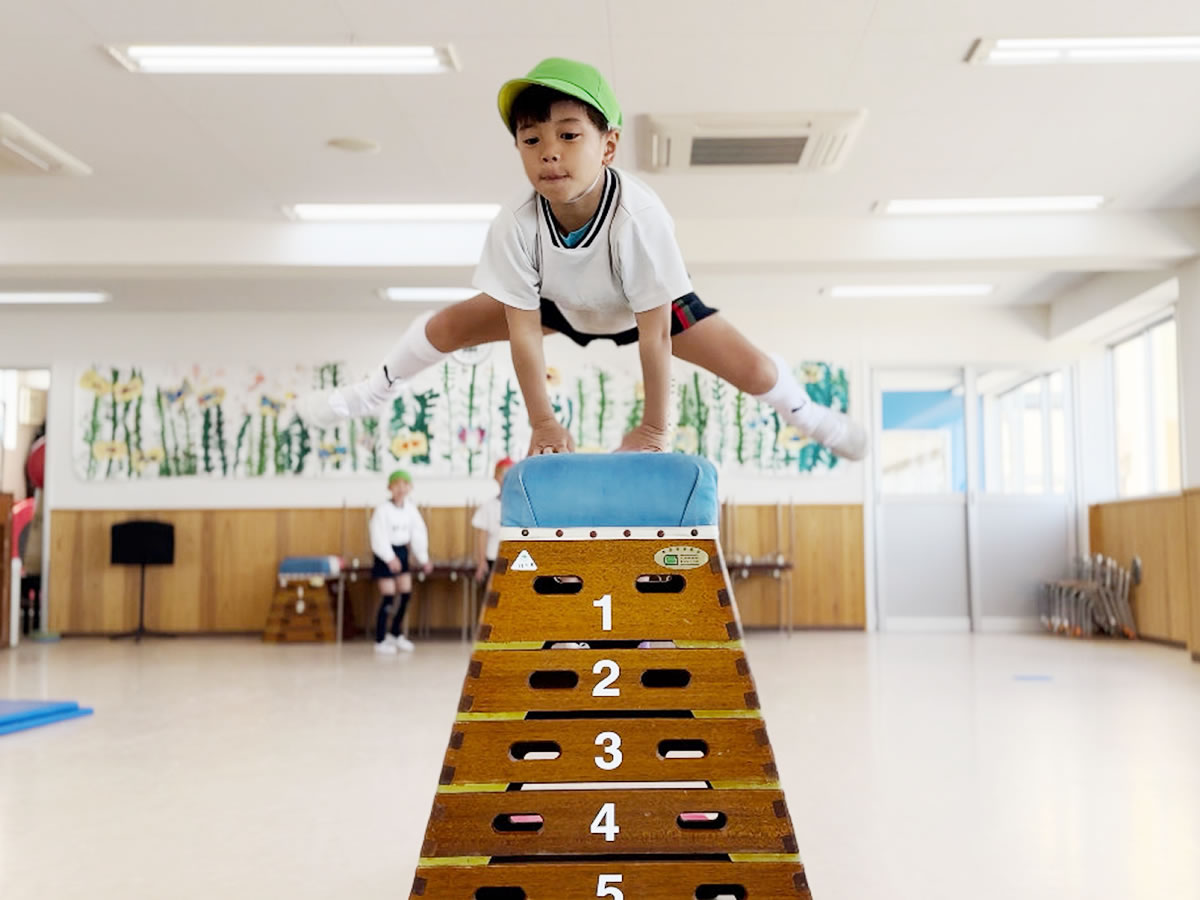 子供達は、各学年に応じた目標をクリアして、「出来た」達成感により自信をどんどんつけていきます。その達成率は95%以上!体育大(順天堂大学など)出身の専任講師による指導である為、苦手な子にも細かなステップを用意します。種目だけではなく体育の時間を通して、努力することや身体を動かす楽しさを覚え、小学校へ行く頃には運動が大好き!運動が得意!と自信を持って進学できます。幼児期から、小学生にかけては神経系が向上するとても大事な時期なので、この時期の運動経験が将来的な運動能力にも繋がると言っても過言ではありません。そんな中、いずみ幼稚園では※7つのコーディネーション能力に注目してカリキュラムを組み立てています。コーディネーショントレーニングは、全身のバランスや協調性を養うとともに、思考力や集中力を鍛える効果もあります。