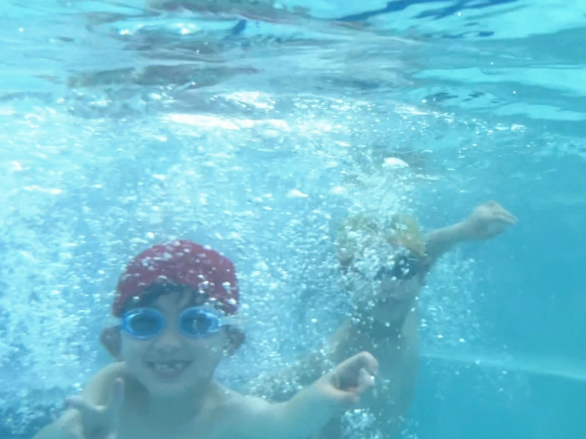 水中運動会 年長児になると、クラス対抗の水泳大会「水中運動会」を行います。クロール・バタ足のリレーやロングビート板のバタ足競争・水中玉入れ・魚拾い等楽しい競技も行い大変盛り上がります。 |